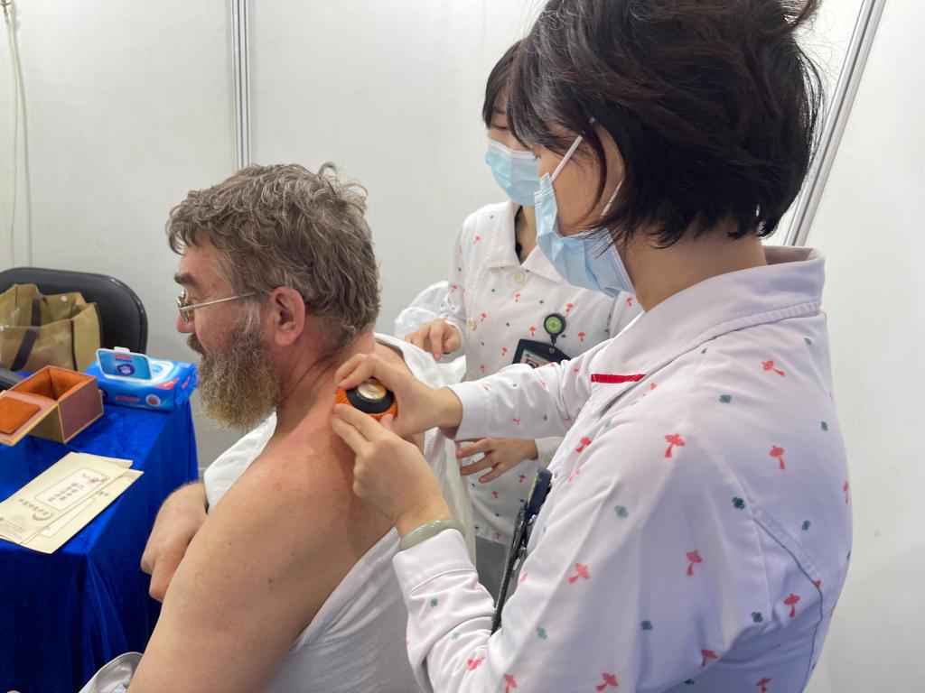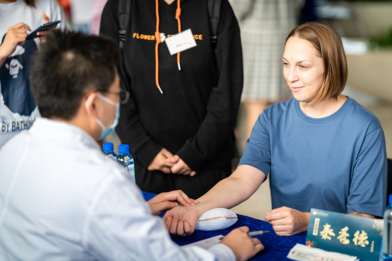 同時(shí),在中方師生的幫助下,深北莫的外籍教師也對(duì)體驗(yàn)活動(dòng)表示出強(qiáng)烈的興趣并積極參與其中。她們表示,在莫斯科也設(shè)有中醫(yī)診所,但數(shù)量較少。對(duì)于此次活動(dòng),她們都覺得非常有趣,希望學(xué)??梢栽俅闻e辦這樣的活動(dòng),增進(jìn)對(duì)于中醫(yī)文化的了解。