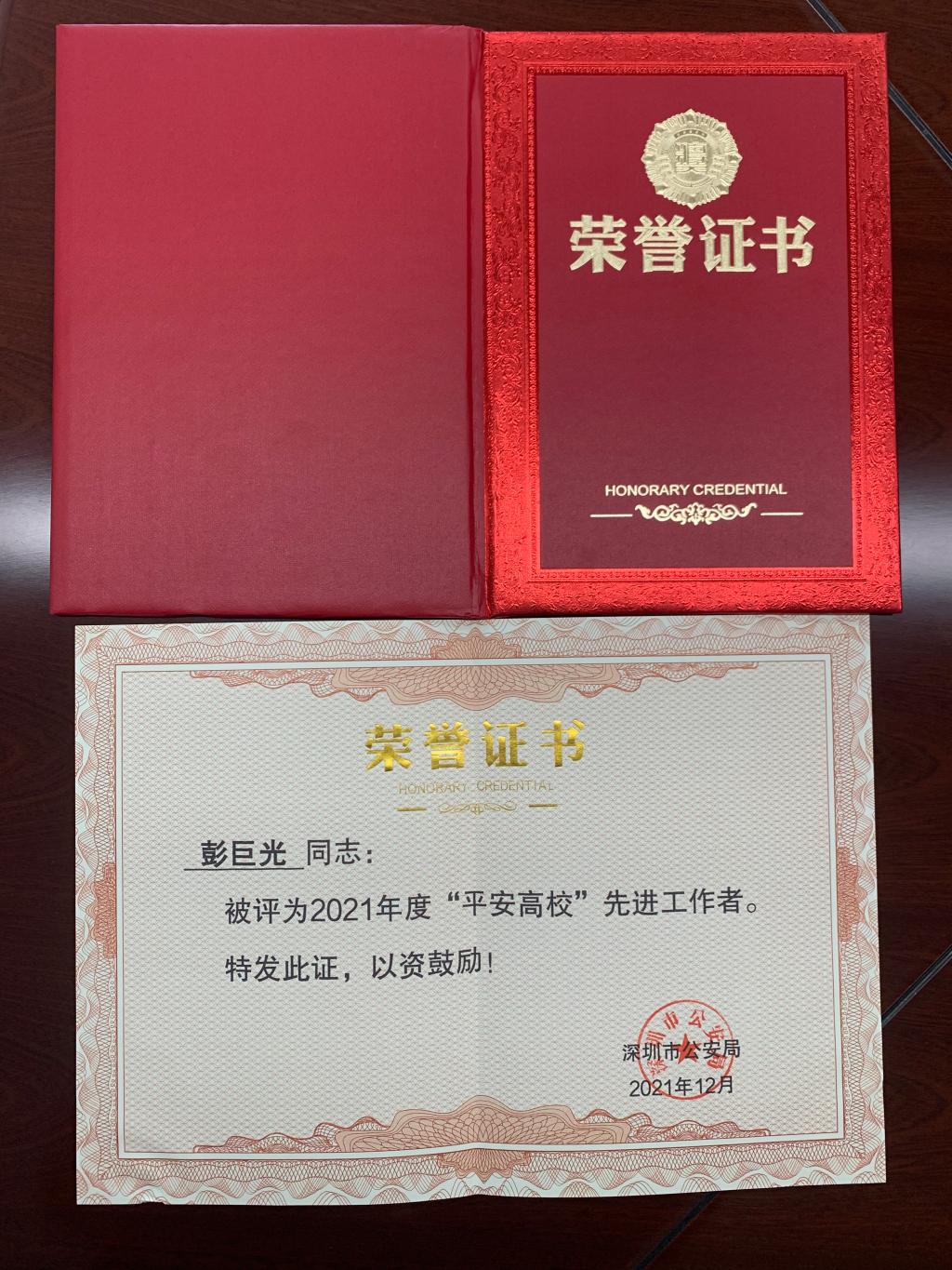 深圳北理莫斯科大學(xué)條件保障部部長彭巨光同志評(píng)為2021年度“平安高校”先進(jìn)工作者。
