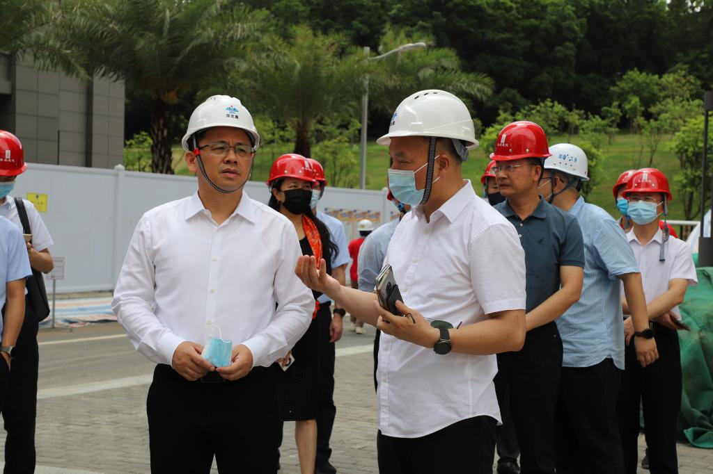 鄭曉生常委一行先后實地調研了體育教學設施、共建書吧、深北莫附屬幼兒園、人工湖補水等項目現場。在項目現場,鄭曉生常委詳細詢問并了解各項目的建設方案、建設進度以及存在困難。朱迪儉書記介紹了學校有關項目的背景和需求,希望龍崗區政府協調解決。