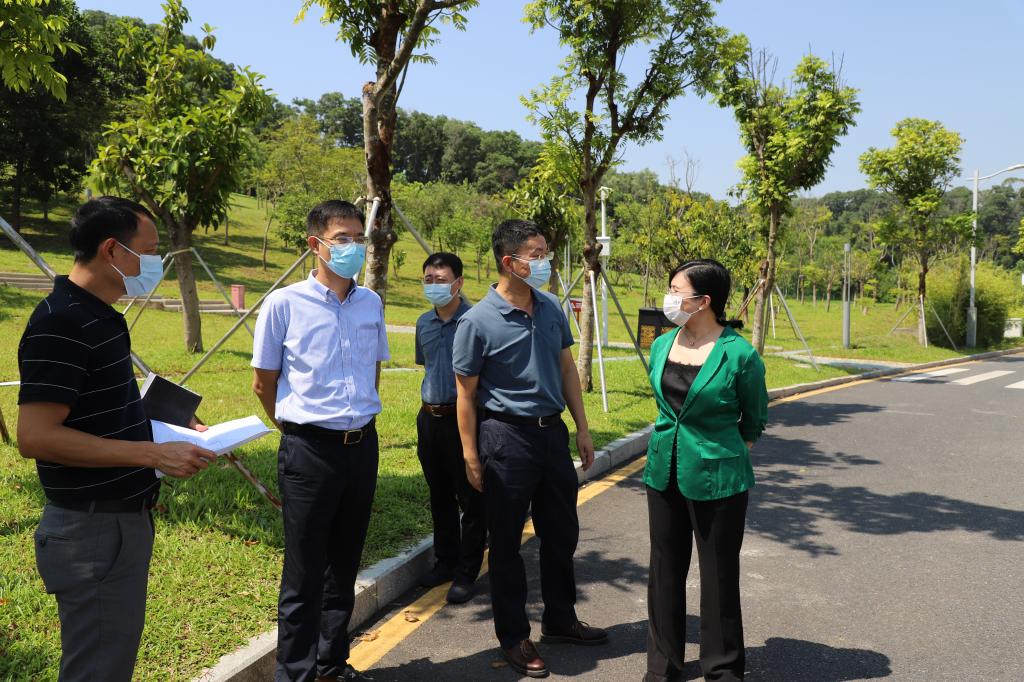 9月6日上午,深圳市龍崗區城管局羅雅局長率隊來校就服務駐區高校進行調研。條件保障部彭巨光部長陪同來訪一行重點考察了食堂廚余垃圾清運處理、校園苗木管養及共建植物園等。