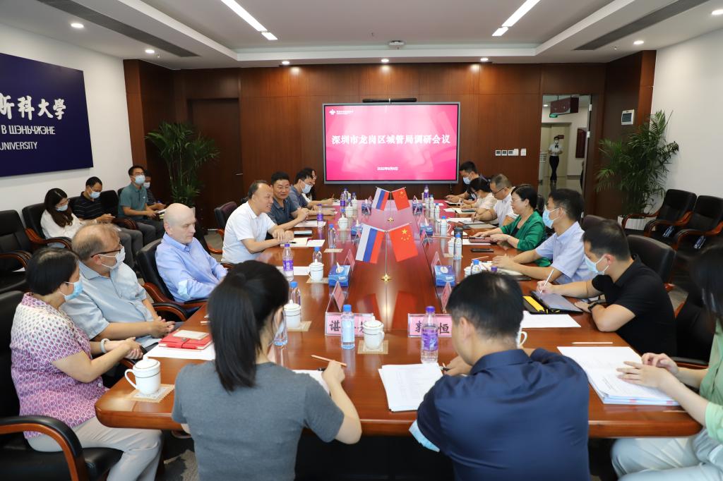 龍崗區城管局謝達副局長、局辦公室、規劃發展科、園林綠化中心等科室負責人和專家和學校生物系基塔紹夫主任、冀四梅第一副主任、條件保障部劉永明副部長、胡旦副部長及相關人員全程參加調研會議。