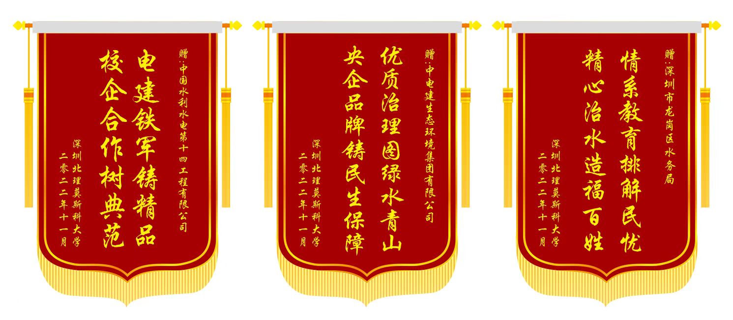 在人工湖畔,彭巨光部長、劉永明副部長代表深圳北理莫斯科大學向龍崗區水務局張五岳部長贈送“情系教育拍解民憂 精心治水造福百姓”錦旗。