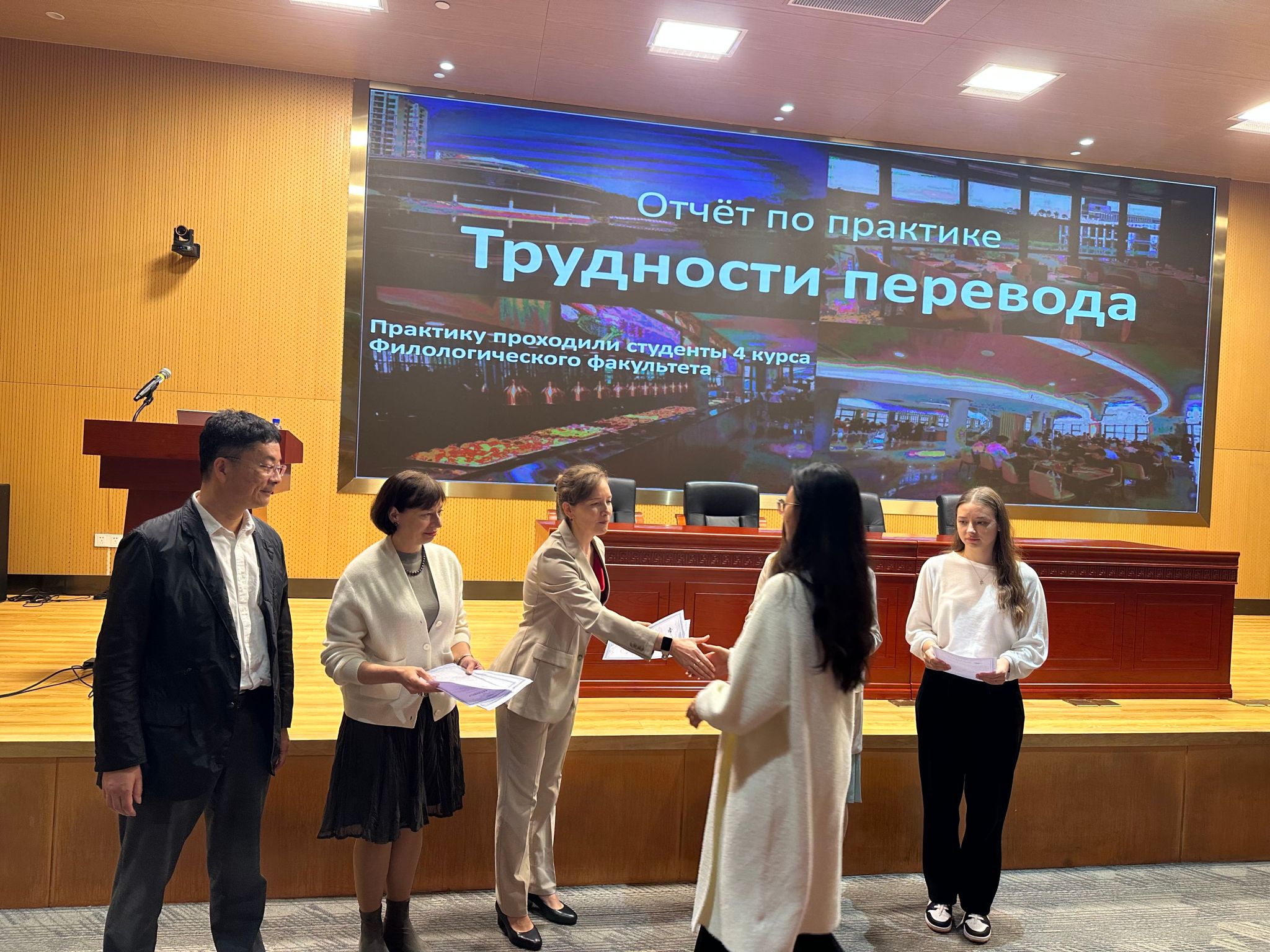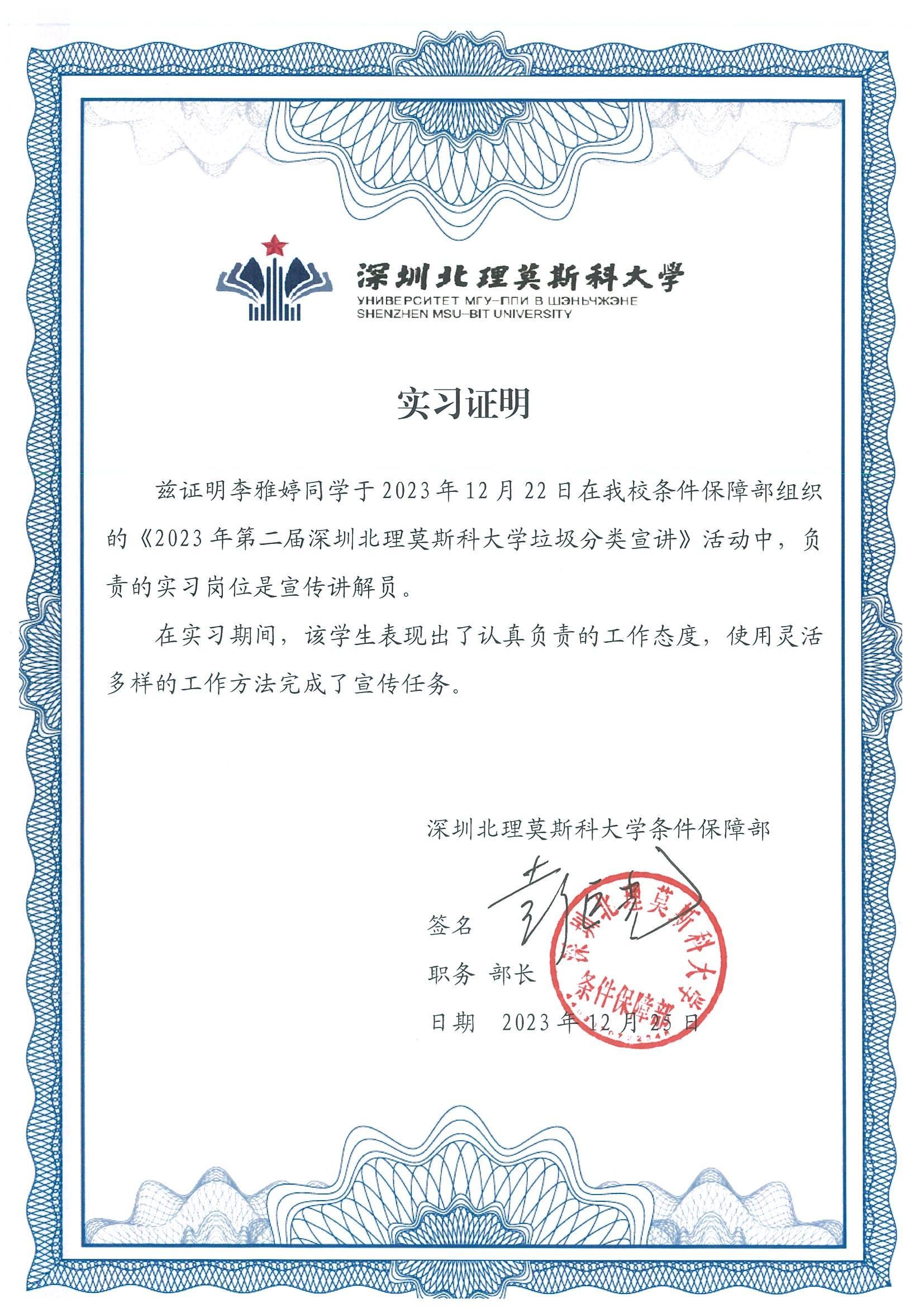 為進一步提高后勤服務學生的功能,把后勤服務與學生社會實踐相結合,構建學生參與后勤事務的多元化服務平臺,加強學生對后勤服務保障工作的理解、支持和參與意識,共同促進后勤服務保障工作向精細化、優質化、后勤服務與教學融合化方向發展。2024年元月2日上午,在深圳北理莫斯科大學圖書館一樓報告廳,語言系、條件保障部主持召開了關于參加食堂菜單翻譯、垃圾分類宣傳同學的頒獎活動。語言系KALMYKOVA MARINA卡爾梅科娃·瑪麗娜老師和系副主任DANILINA OLGA達尼利娜·奧莉加老師,條件保障部部長彭巨光教授,條件保障部后勤主管、國際學生輔導員牛大鈞老師參加頒獎儀式,有30多位同學獲得《實習證明》。