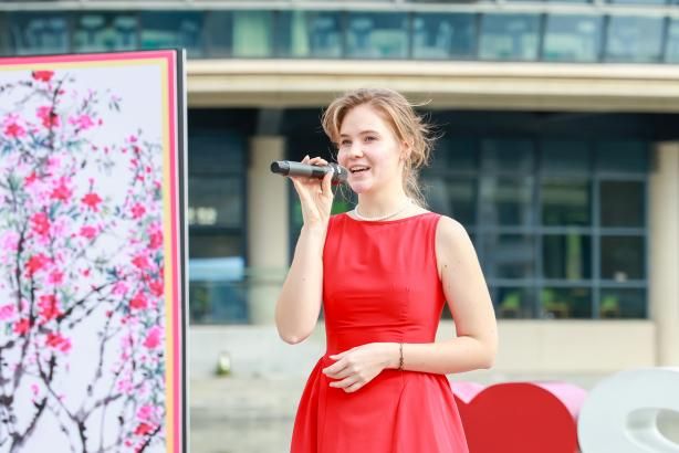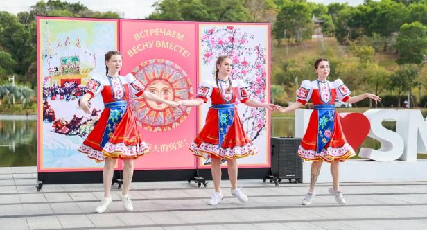 下午3時許,由藝術中心中俄師生和深北莫幼兒園帶來的演出將現場氣氛推向高潮。演出在深北莫幼兒園的《萌娃鬧春》節目中拉開序幕。詩朗誦《冬天的憤怒不無原因》《春江花月夜》情真意切、感人至深;舞蹈演出《喜上枝頭》《花》《卡德里爾舞曲》和《紅莓山上》《莫斯科卡德里爾》熱情洋溢、富有創意,瞬間點燃現場氣氛;當歌曲《小美滿》《莫斯科郊外的晚上》熟悉的旋律響起,全場觀眾為之動容。