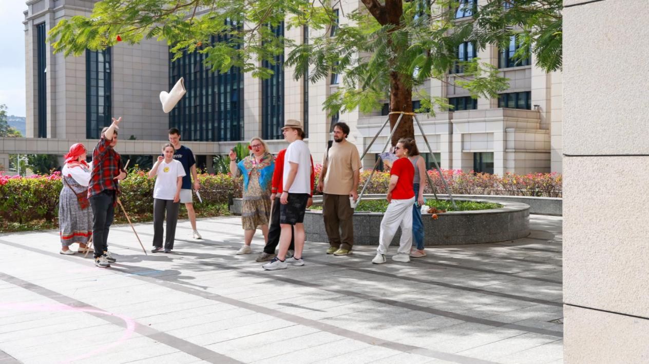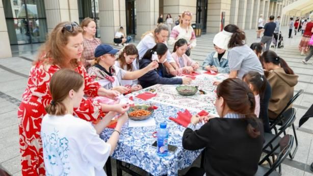 活動當天,湖畔廣場熱鬧非凡。焦黃的薄煎餅、俄式酸奶、蜂蜜、茗茶、春餅等中俄特色美食攤位人流攢動,營造出濃郁的節日氛圍。互動體驗區同樣吸引了眾多師生駐足停留,師生們不僅可以學習制作傳統的俄羅斯碎布娃娃、繪制俄羅斯套娃、體驗俄羅斯書法以及嘗試用勺子演奏,還能動手制作中國非遺手作漆扇、菱形風箏等,豐富多彩的活動充分展示了中俄文化交融碰撞的獨特魅力。此外,現場還設置了拍照打卡區,師生們與身著俄羅斯特色民族服飾的工作人員合影留念,留下難忘的瞬間。