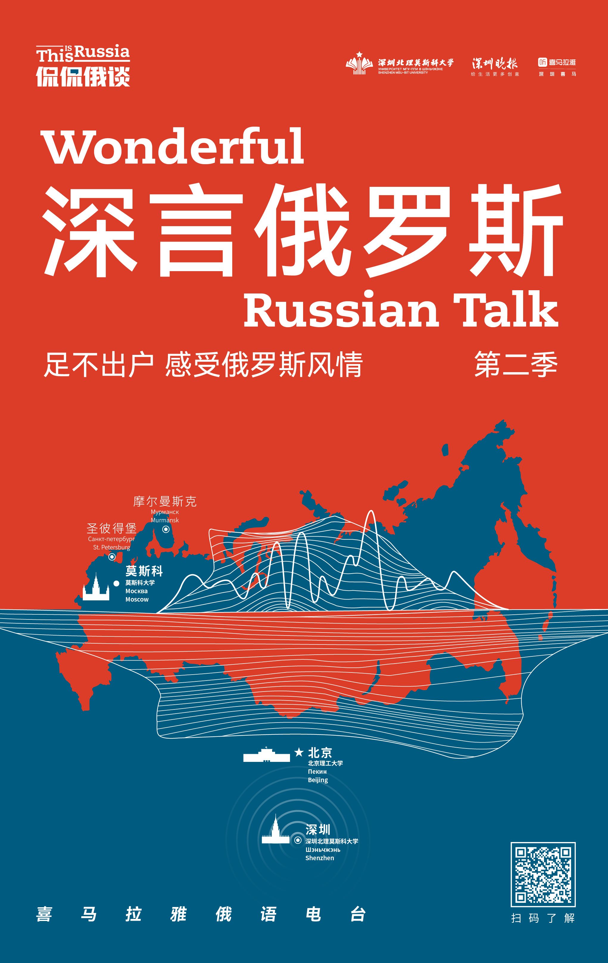 由深圳北理莫斯科大學(xué)聯(lián)合深圳晚報(bào)、深圳喜馬拉雅重磅打造的全國(guó)高校首檔原創(chuàng)中俄雙語(yǔ)播客“侃侃俄談”《深言俄羅斯》第二季升級(jí)回歸。那么,如何收聽精彩的節(jié)目?有四種方式!