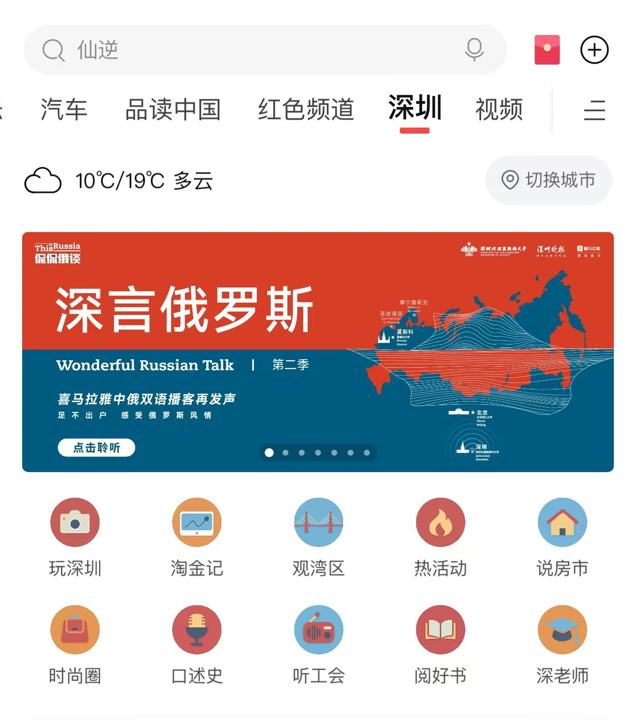 登陸喜馬拉雅APP,點(diǎn)擊進(jìn)入“深圳”頻道后,即可看到首頁(yè)焦點(diǎn)圖“侃侃俄談”,點(diǎn)擊收聽第一期;