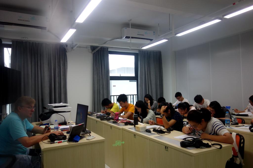 8月31日上午,俄語(yǔ)語(yǔ)言中心舉行了第一次俄語(yǔ)階段性測(cè)試,參加俄語(yǔ)強(qiáng)化培訓(xùn)的中國(guó)籍本科生全部參加了本次考試。此次考試包括筆試和口試兩部分。筆試內(nèi)容涵蓋了詞匯、語(yǔ)法、閱讀和寫作,時(shí)間為60分鐘;口試內(nèi)容涉及“我的家庭”、“我的業(yè)余時(shí)間”等6個(gè)話題,時(shí)間為10-15分鐘??碱}緊密結(jié)合本階段的教學(xué)內(nèi)容。考試期間,學(xué)生安靜、沉著地答題,考場(chǎng)秩序井然。