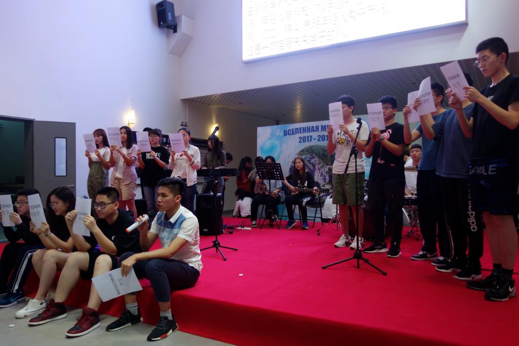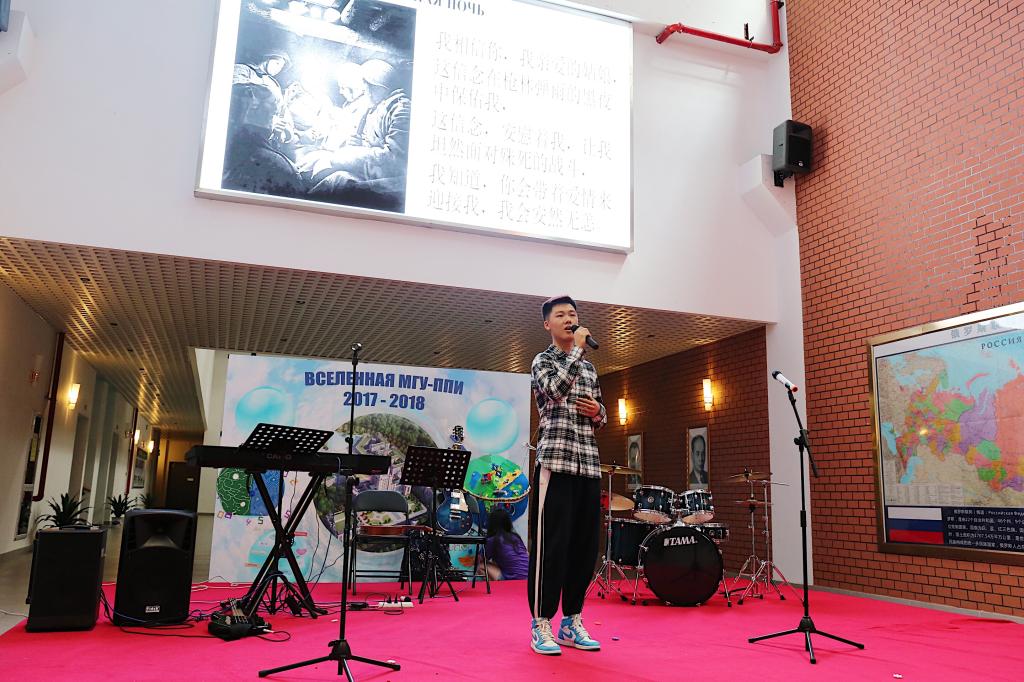本次活動按照節(jié)日的時(shí)間順序,分為“4月12日宇航日”、“5月1日勞動節(jié)”和“5月9日勝利日”三部分進(jìn)行。節(jié)目涵蓋節(jié)日來歷及慶祝活動介紹(包括播放視頻)、游戲比賽、詩歌朗誦、歌曲獨(dú)唱、合唱等,內(nèi)容豐富,節(jié)日氣息濃厚。圍繞宇航日設(shè)置的,由一名身著臃腫宇航服的學(xué)生模擬宇航員在太空作業(yè)的場景,令大家耳目一新;歌曲《大學(xué)生之歌》、《莫斯科之窗》,以及來自不同系別的同學(xué)們制作的“深圳北理莫斯科大學(xué)宇宙”模型,生動體現(xiàn)了“五一勞動節(jié)”是獻(xiàn)給所有熱愛勞動的人們的節(jié)日;戰(zhàn)爭題材的詩歌《等著我吧》、《勇敢》、《音樂》,以及歌曲《漆黑的夜》等,在一幅幅戰(zhàn)爭情境圖片的烘托下,向在場的人們訴說了1945年5月9日衛(wèi)國戰(zhàn)爭勝利的來之不易,同時(shí)也表達(dá)了無論戰(zhàn)爭多么殘酷,人們總是向往和平的生活,堅(jiān)信會過上和平生活的強(qiáng)烈信念。“希望世界上不再有戰(zhàn)爭,希望我們頭頂上永遠(yuǎn)是和平的藍(lán)天,希望所有的民族都能和睦共處。”帶著主持人的美好祝愿,活動在歌曲《愿陽光永照》中落下帷幕。