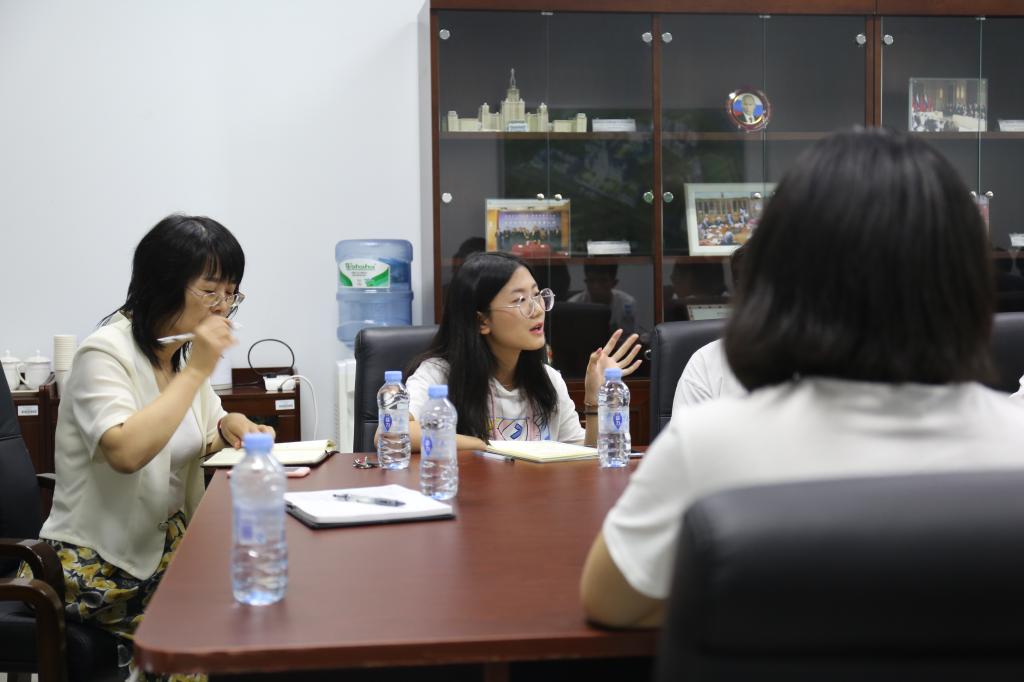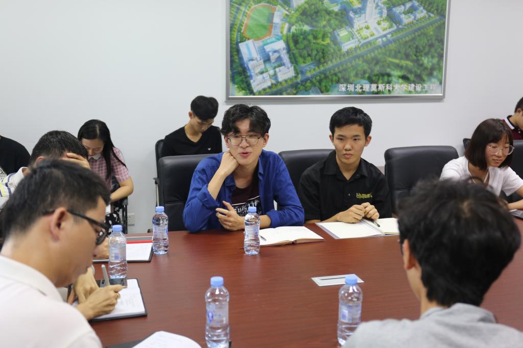 14名來自各個班級的學生代表分別就同學們關于學習生活方面的意見建議進行了交流。