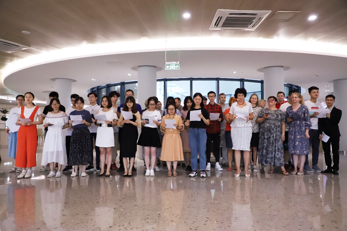 活動尾聲,俄語老師和學生助教們合唱的一首《深圳華爾茲》將整場活動推向高潮。這首歌曲由在深北莫工作了兩年的莫斯科大學教師巴薩拉巴親自編寫,歌曲內容表現了俄語老師們對深圳這座城市以及深北莫濃厚的感情,對學校所有學生的熱愛。