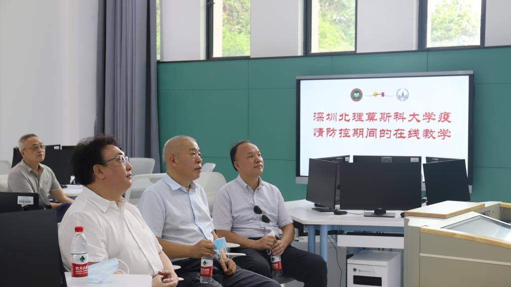 蔣宇揚一行首先參觀校園并對學校中俄跨國在線教學工作進行考察。學校學術事務部第一副部長楊剛介紹了學??鐕诰€教學的總體情況,并展示了跨國在線教學的應用場景。蔣宇揚對學校在線教學工作開展情況予以充分肯定。他表示,學校應充分發揮莫斯科大學學科優勢,將數學、材料學、生物學等優勢學科的在線課程打造成精品課程,利用深圳產業優勢和深圳灣實驗室等一批國內頂尖的重大科研平臺推動學校科研平臺能力建設,探索聯合培養機制。