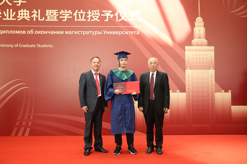 “‘青年者人生之王,人生之春,人生之華。’同學(xué)們作為我們這所初創(chuàng)期的中俄合作大學(xué)的畢業(yè)生,你們都是新型教育勇敢的探路者。”李和章校長在致辭中對畢業(yè)生表達(dá)了深切的不舍與感謝。李和章校長表示,在這段中俄兩國共克時(shí)艱的日子里,大家經(jīng)歷了從未有過的“云畢業(yè)”,他正式邀請未能參加現(xiàn)場典禮的畢業(yè)生們,可以在今后任意一年返校參加畢業(yè)典禮。李和章校長還對畢業(yè)生們提出了兩點(diǎn)希望:一是希望同學(xué)們始終抱有遠(yuǎn)大的志向,要勇于擔(dān)負(fù)起“一帶一路”建設(shè)發(fā)展的重任,擔(dān)負(fù)起中華民族崛起乃至人類社會(huì)進(jìn)步的重任;二是希望深北莫的每一位學(xué)子志存高遠(yuǎn),以天下為己任,義無反顧地投身到社會(huì)經(jīng)濟(jì)建設(shè)和科學(xué)研究領(lǐng)域的前沿,為中國乃至世界文明進(jìn)步做出自己的貢獻(xiàn)。“你們是與新學(xué)校、新時(shí)代共同前進(jìn)的后浪,既擁有廣闊發(fā)展空間,也承載著偉大時(shí)代使命。希望你們永葆持之以恒的韌勁,不忘初心,不言放棄,善始善終,善作善成,用扎扎實(shí)實(shí)的成績?yōu)槲磥礓伮贰!?/p>