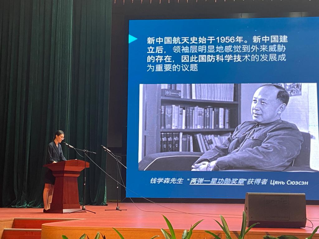2017級材料系學生段婧同用流利的俄語向在場師生介紹了中國人從古至今的飛天夢想、中國太空探測技術以及中國航空航天事業的發展歷程,使俄羅斯老師們對中國的航空航天事業發展也有了更深入的了解。
