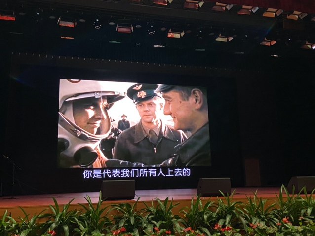 隨后,在場師生共同觀看了俄羅斯紀錄片?Гагарин—Первый в Космосе? (《搏擊太空》)片段。該片詳細講述了前蘇聯宇航員尤里·加加林成功實現人類第一次太空飛行的過程,通過大量紀實錄像真實地還原了發射場面。影片中扣人心弦情節給大家留下了深刻的印象,增進了同學們對首次太空飛行的了解。俄語中心教師德米特里·克留科夫告訴同學們,航空航天事業對人類的發展至關重要,希望大家能努力學習知識、打好理論基礎,懷抱太空夢,探索新高度。