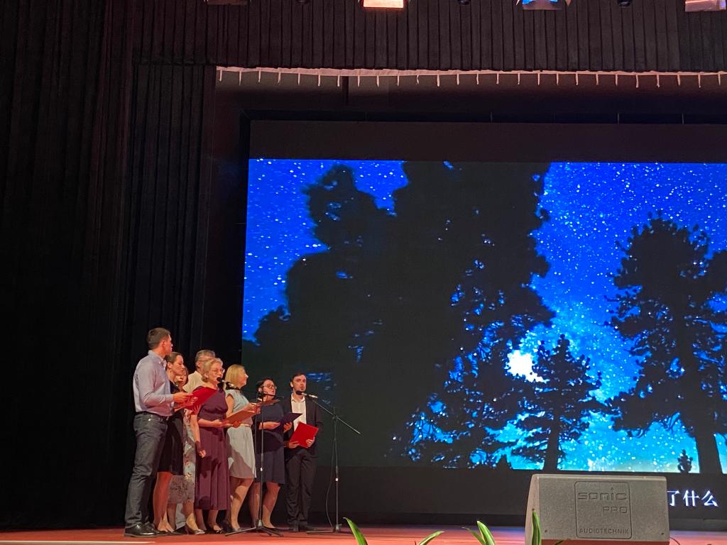最后,俄語中心的俄羅斯教師們共同演唱了歌曲?Этот Большой Мир?(偉大地球)。該曲由羅伯特·羅日杰斯特文斯基的詩歌改編而成,表達了人類對天空的向往,對大自然的親近。