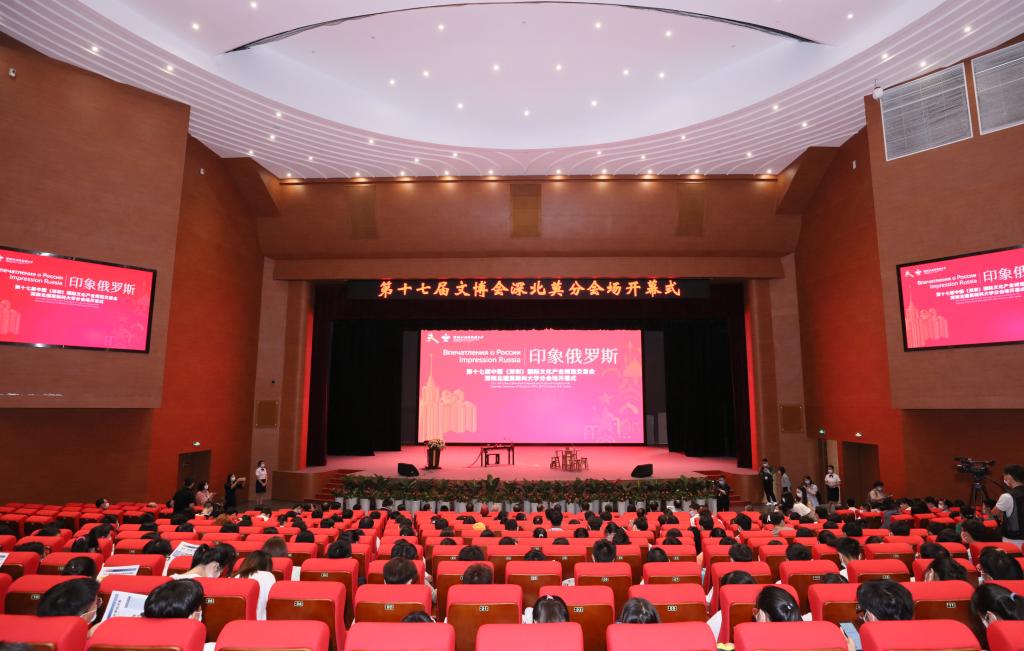 9月23日下午,印象俄羅斯——第十七屆中國(深圳)國際文化產業博覽交易會深圳北理莫斯科大學分會場開幕式在學校禮堂舉行。龍崗區文化廣電旅游體育局副局長李震,深圳職業技術學院校長許建領,深圳技術大學黨委副書記、紀委書記張巖鴻,深圳信息職業技術學院副校長周彥兵,中國國際象棋協會主席、國際象棋特級大師葉江川,深圳棋院院長劉適蘭,中國棋院國際跳棋和五子棋部主任、圍棋職業九段張文東,象棋特級大師、象棋女子世界冠軍王琳娜以及各高校、協會及企業相關領導及代表出席開幕式。參加開幕式的還有深圳北理莫斯科大學校長李和章,黨委書記、副校長朱迪儉,黨委副書記、紀委書記陳超峰和師生代表,以及深圳信息職業技術學院學生代表。
