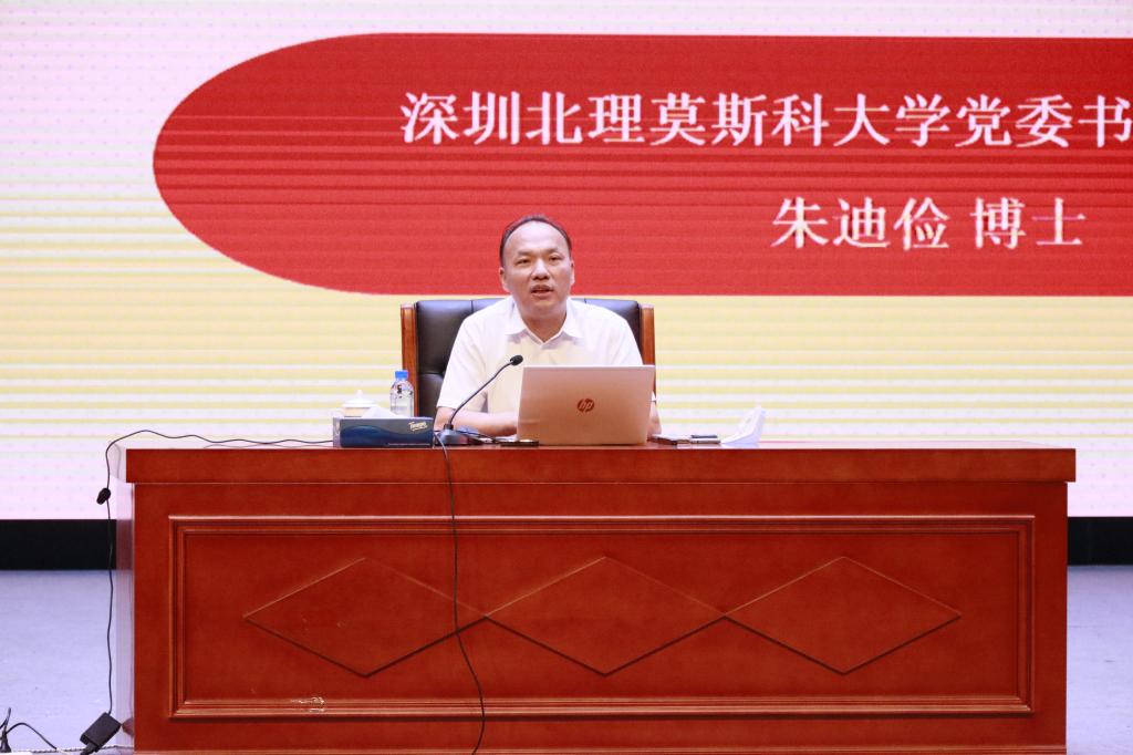 9月27日晚,深圳北理莫斯科大學黨委書記、副校長朱迪儉以《學問與證明》為主題向2018級、2019級本科生以及全體碩士研究生講授“思政第一課”。學校各部門負責人代表、各年級輔導員、德育導師等參與。