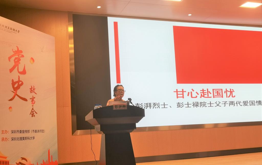 本次活動特別邀請了全國模范教師、南方科技大學黨委委員、教授會會長、海洋科學與工程系黨支部書記、講席教授劉青松,彭湃烈士孫女、省第十、十一屆政協委員、深圳市關愛行動公益基金會原秘書長、高級政工師彭伊娜,國家一級演員、廣東省青年講師團講師、市七屆人大代表、市音樂家協會副主席、羅湖區音樂家協會主席楊樂等三位嘉賓分別從不同角度帶來3個精彩紛呈的黨史故事。
