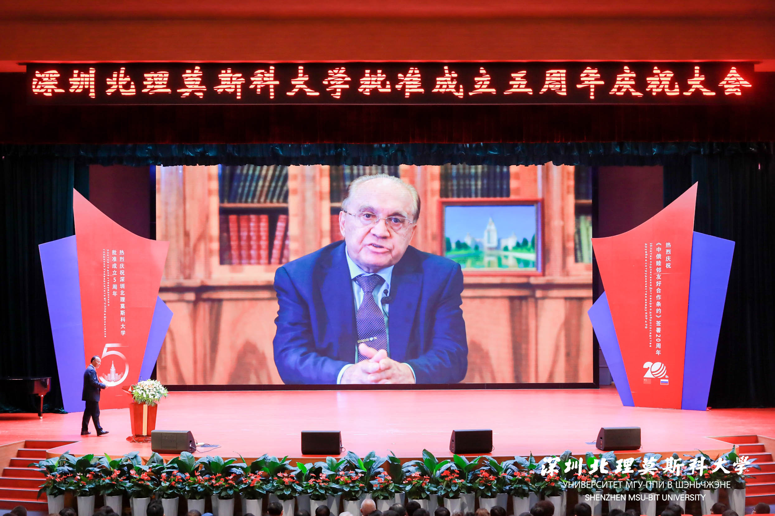 莫斯科大學校長薩多夫尼奇院士發來祝賀視頻。他表示五年前的今天,莫斯科大學與北京理工大學獲得了中華人民共和國教育部關于合作辦學的正式批準,在真正意義上成立了這所大學。在5歲生日之際,在深圳市人民政府、莫斯科大學、北京理工大學一如既往的支持下,深北莫取得了杰出的成果。他相信,歷史上第一所俄中合作大學將會光輝地實現兩國元首的期待,成為高水平人才的鍛造師,深北莫所培養的人才將會在全球炙手可熱。