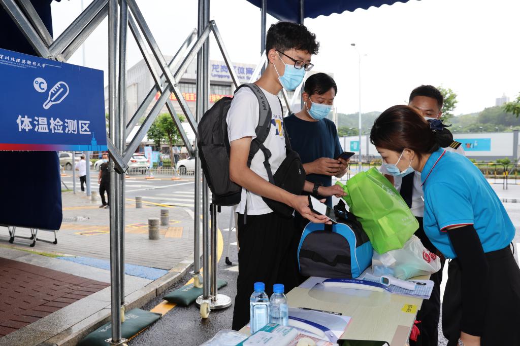 為給新生報到保駕護航,學校在深圳寶安國際機場、深圳北站提供全天免費班車接送服務,第一時間為抵達深圳的新生提供暖心服務。