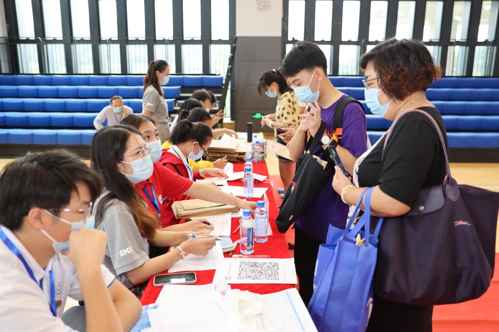 鑒于國內疫情形勢,根據省市教育部門關于高校秋季開學防疫工作要求及轄區相關部門防疫工作指引,學校精心制定了一系列防疫工作方案和應急處置預案,并從嚴落實各項防控措施,提前通過各種渠道告知學校防疫政策,在校門口設立查驗點,新生及隨行人員在查碼、測溫或查驗核酸檢測報告證明后才可進入校園。值得一提的是,學校還專門在體育場搭建臨時核酸檢測采樣點,為所有入校新生提供免費核酸檢測服務,實現核酸檢測采樣不出校門、全員覆蓋,并對85名從中風險區所在城市來的新生發放健康告知書、開展健康問詢,落實“三天兩檢”。按照上級防疫要求,此前已有數名來自中高風險地區城市的新生提前于8月初抵達學校進行防疫隔離和封閉管理,學校為隔離學生提供送餐、送物等非接觸式后勤保障和人文關懷以及上門核酸檢測采樣服務。高標準、高要求筑牢防疫城墻,確保新生報到期間校園安全有序。