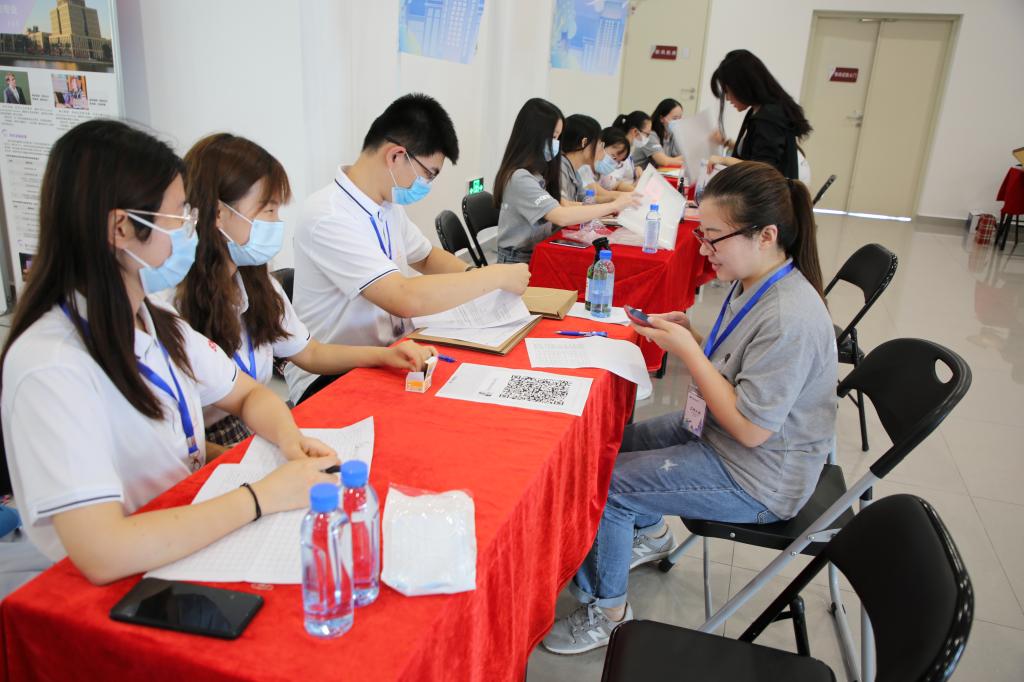 與本科新生一樣,2021級碩士研究生及隨行人員在學校門口完成查碼、測溫或查驗核酸檢測報告證明后才可入校進行“一站式”報名,憑證件快速辦理宿舍入住手續,領取校園一卡通。學校為所有入校新生提供免費核酸檢測服務,實現核酸檢測采樣不出校門、全員覆蓋。