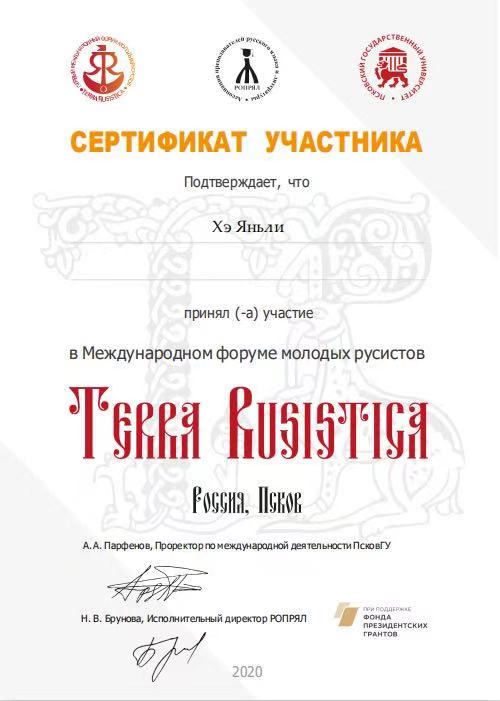 值得一提的是,何艷麗同學(xué)還參加了普斯科夫國(guó)立大學(xué)第三屆國(guó)際學(xué)術(shù)會(huì)議“世界無國(guó)界”暨首屆國(guó)際青年俄羅斯語(yǔ)言學(xué)家論壇。該論壇于去年12月舉行,匯集了來自世界許多國(guó)家的年輕學(xué)者。