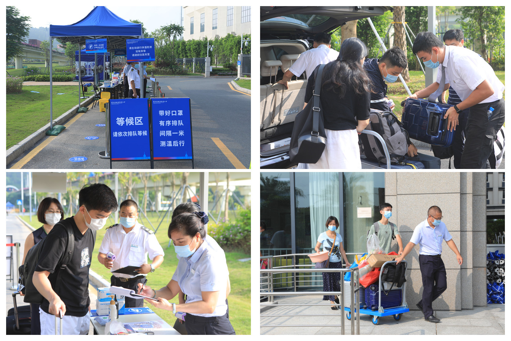 為了迎接新生到來,學校在深圳寶安國際機場T3航站樓到達廳、深圳北站西廣場出站口提供免費班車接送服務。學校嚴格遵守國家、省市的秋季返校防疫工作要求,精心制定了一系列工作方案、應急預案,安排新生及家長統一從學校東門進入,并在校門口設立查驗點,新生以及隨行人員在進行體溫檢測和核查健康碼后才可進入校園,為校園筑起一道堅實、安全的防護墻。