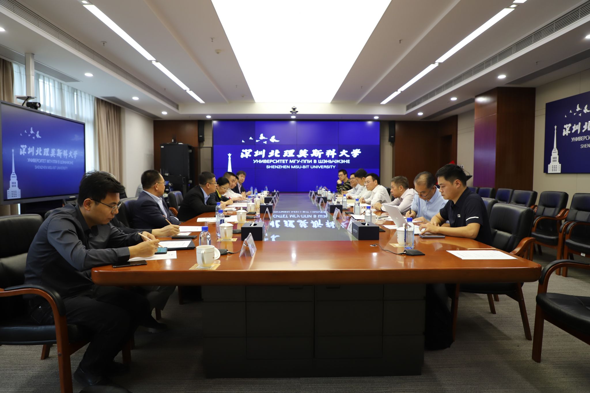 應急管理部沈陽消防研究所科技處處長董文輝、市支隊火調技術處處長宣硙、中國礦業大學安全學院院長王恩元、深圳研究院院長袁狄平、副教授張國維;深圳北理莫斯科大學交叉技術研究院院長秦慶華、條件保障部部長彭巨光、材料科學系主任李樹奎、工程系教授王偉、安全主任歐陽征武、科研事務部劉岳磊、信息中心謝應雙等參加座談會,并見證了大學和深圳市消防救援支隊共建的“深港國際消防聯合科創基地”揭牌儀式。