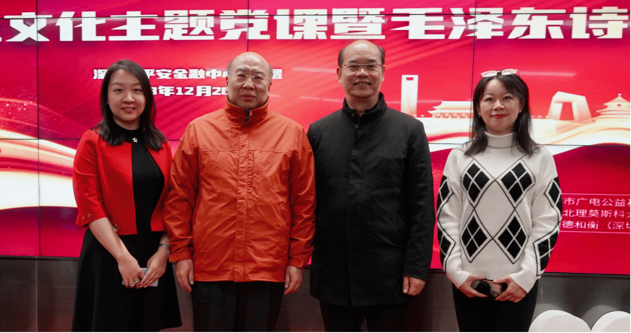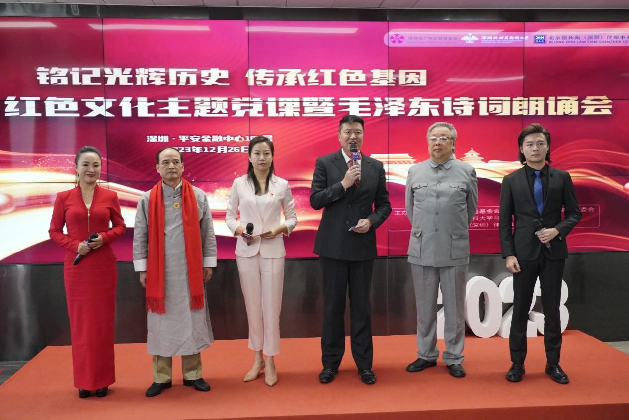 為響應(yīng)中共中央在北京人民大會堂舉行的“紀(jì)念毛澤東同志誕辰130周年座談會”會議精神和要求,深圳北理莫斯科大學(xué)馬克思主義學(xué)院聯(lián)合深圳市廣電公益基金會-紅色文化產(chǎn)業(yè)公益基金管委會、北京德和衡(深圳)律師事務(wù)所黨總支,在深圳平安金融中心100層共同主辦了紀(jì)念毛澤東誕辰130周年的活動。本次活動以“銘記光輝歷史傳承紅色基因”為主題,以“學(xué)習(xí)毛澤東、貢獻新時代”為主線,以“集體毛澤東主席詩詞朗誦”為載體,深切緬懷毛澤東同志的豐功偉績。紀(jì)念毛澤東、學(xué)習(xí)毛澤東,就是為了勿忘昨天的苦難輝煌,無愧今天的使命擔(dān)當(dāng),不負(fù)明天的偉大夢想,就是為了在習(xí)近平新時代中國特色社會主義思想的偉大旗幟下,繼續(xù)推進毛澤東等老一輩無產(chǎn)階級革命家所開創(chuàng)的偉大事業(yè)。