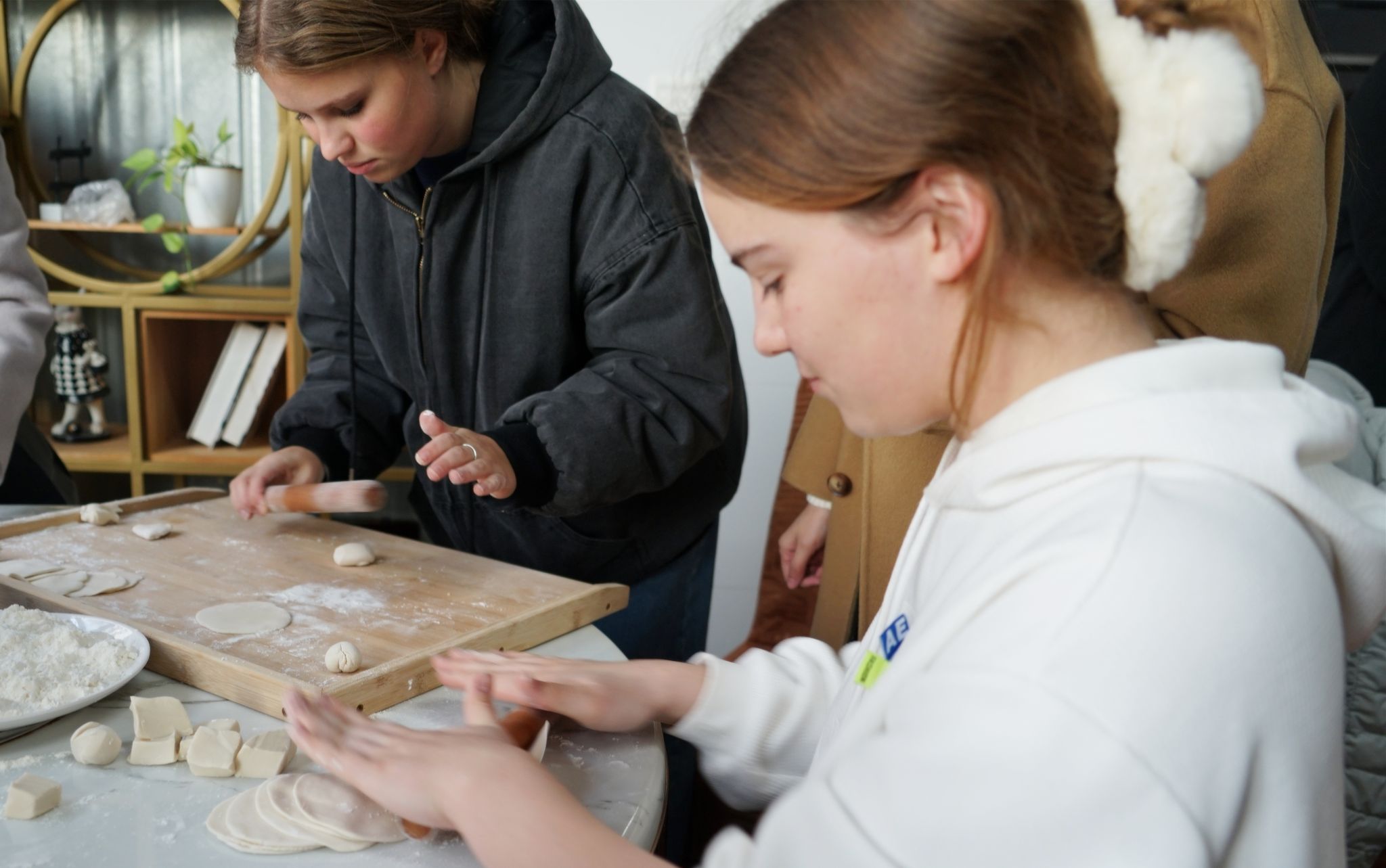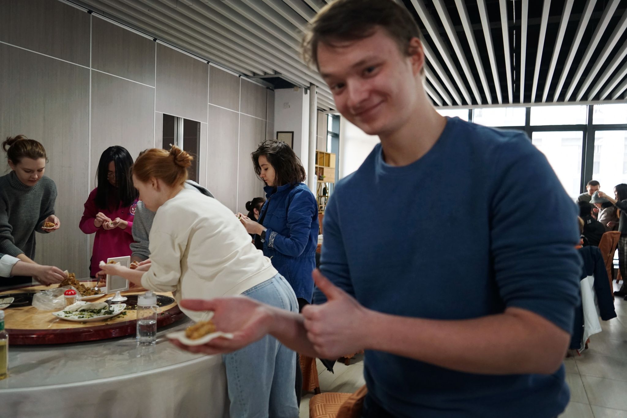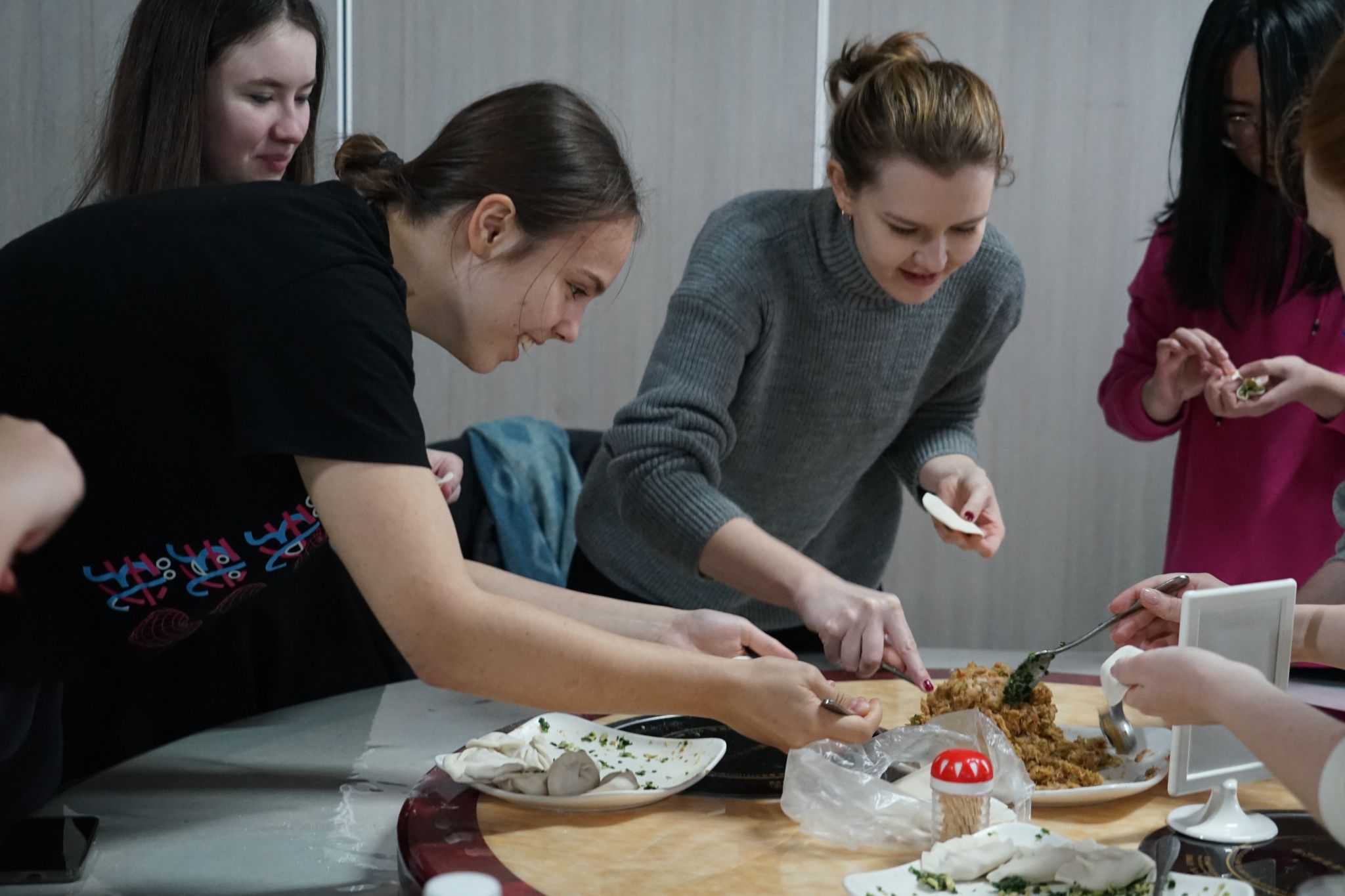 借著冬至余韻,漢語中心的老師帶領學生們前往一食堂進行包餃子體驗活動。從切面劑子,到搟皮、包餃子,再到熱氣騰騰的餃子出鍋,留學生們體驗了制作餃子的整個過程。在老師的指導下,大家爭相嘗試搟皮、裝餡,小心翼翼地捏出一個個各式各樣的餃子。有趣的是,一些同學還包起了俄式餃子。中式餃子餡兒配上俄式餃子外型,將文化交融體現得淋漓盡致。一盤盤冒著熱氣的餃子出鍋,驅趕了歲末冬寒,溫暖了在異鄉求學同學們的心。