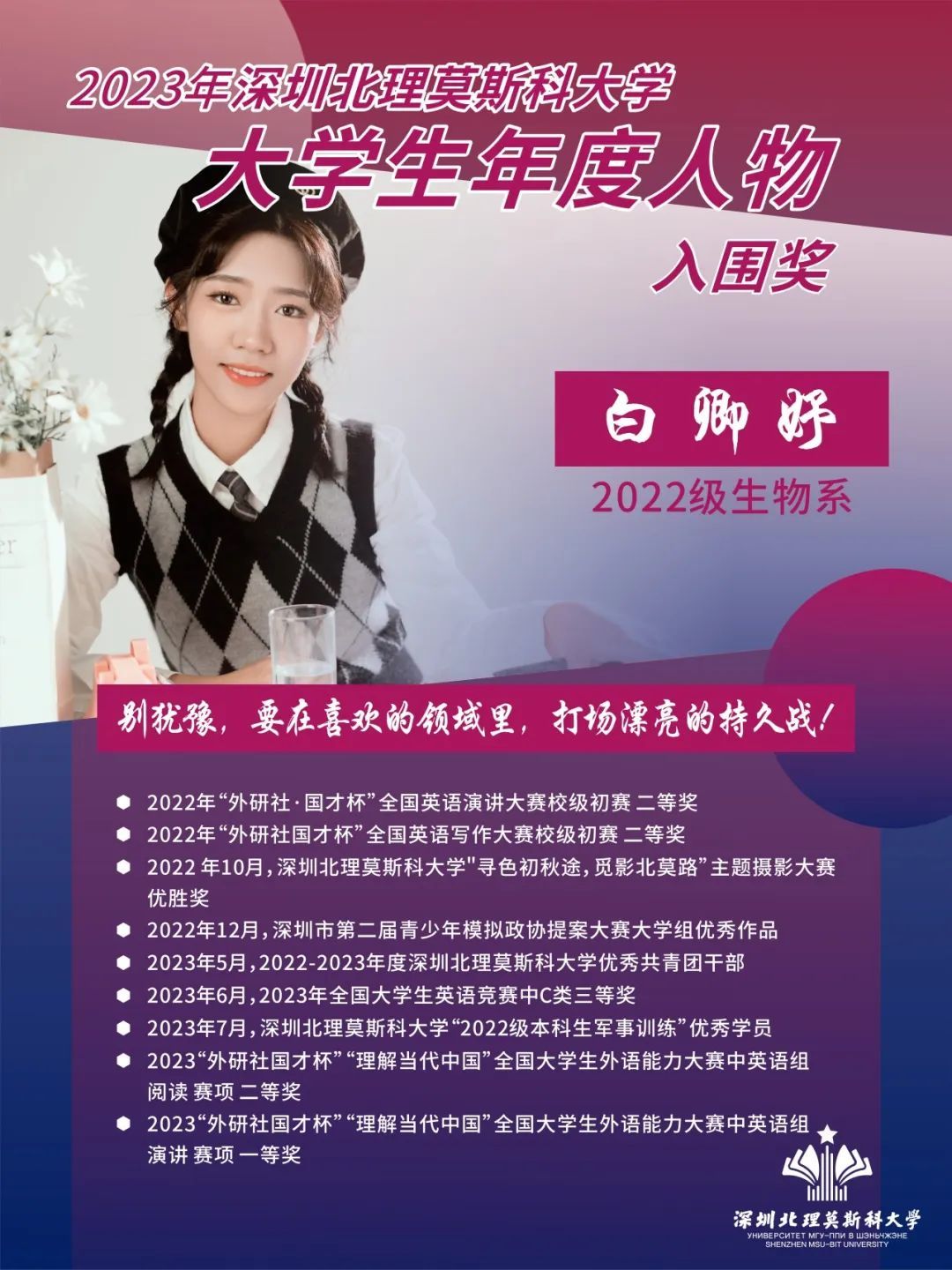 此外,有8名候選人獲得了2023年深圳北理莫斯科大學年度大學生人物“入圍獎”榮譽稱號。