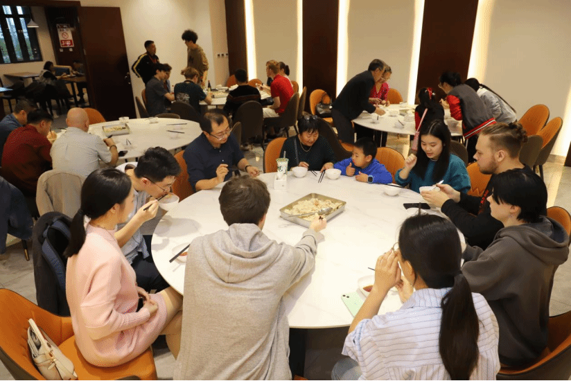 包完餃子,師生們圍坐一起,共進別具意義的“小年夜飯”,大家一邊吃著熱騰騰的餃子,一邊暢聊未來。