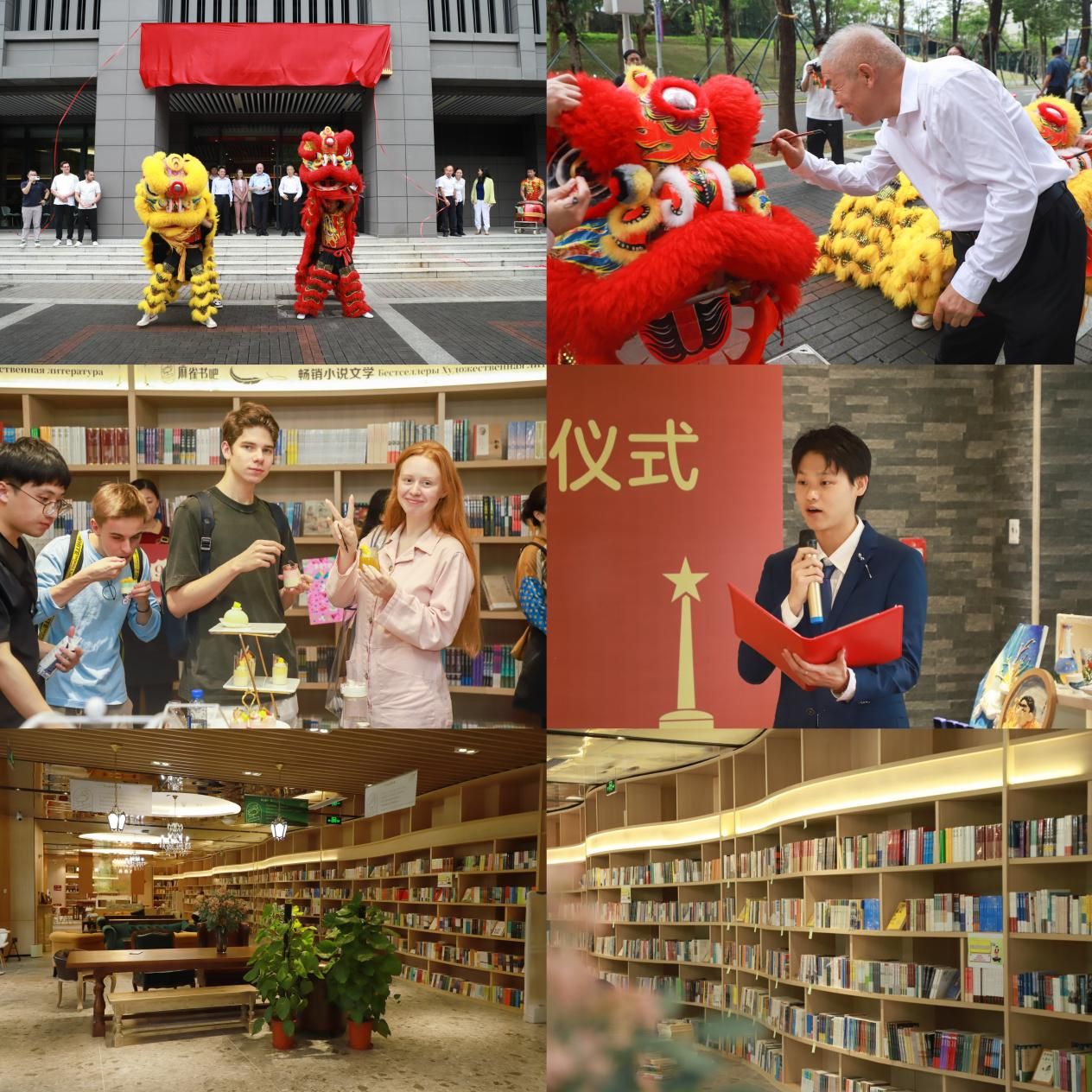 閉幕式上還舉辦了麻雀書吧揭牌儀式。李和章、朱迪儉、伊萬琴科、陳超峰等領導嘉賓共同為麻雀書吧揭牌。麻雀書吧坐落于校園生活區的核心地帶,兼具閱讀、休閑與研討交流等多重功能。書吧內部空間寬敞明亮,其裝修設計以俄羅斯復古文藝風格為基調,巧妙地將書籍、油畫、文創產品及藝術裝飾品融為一體,營造出一種古典、浪漫且溫馨的閱讀氛圍。作為傳播知識、啟迪智慧的重要陣地,麻雀書吧旨在為師生們提供一個更加便捷、舒適的閱讀與交流空間。