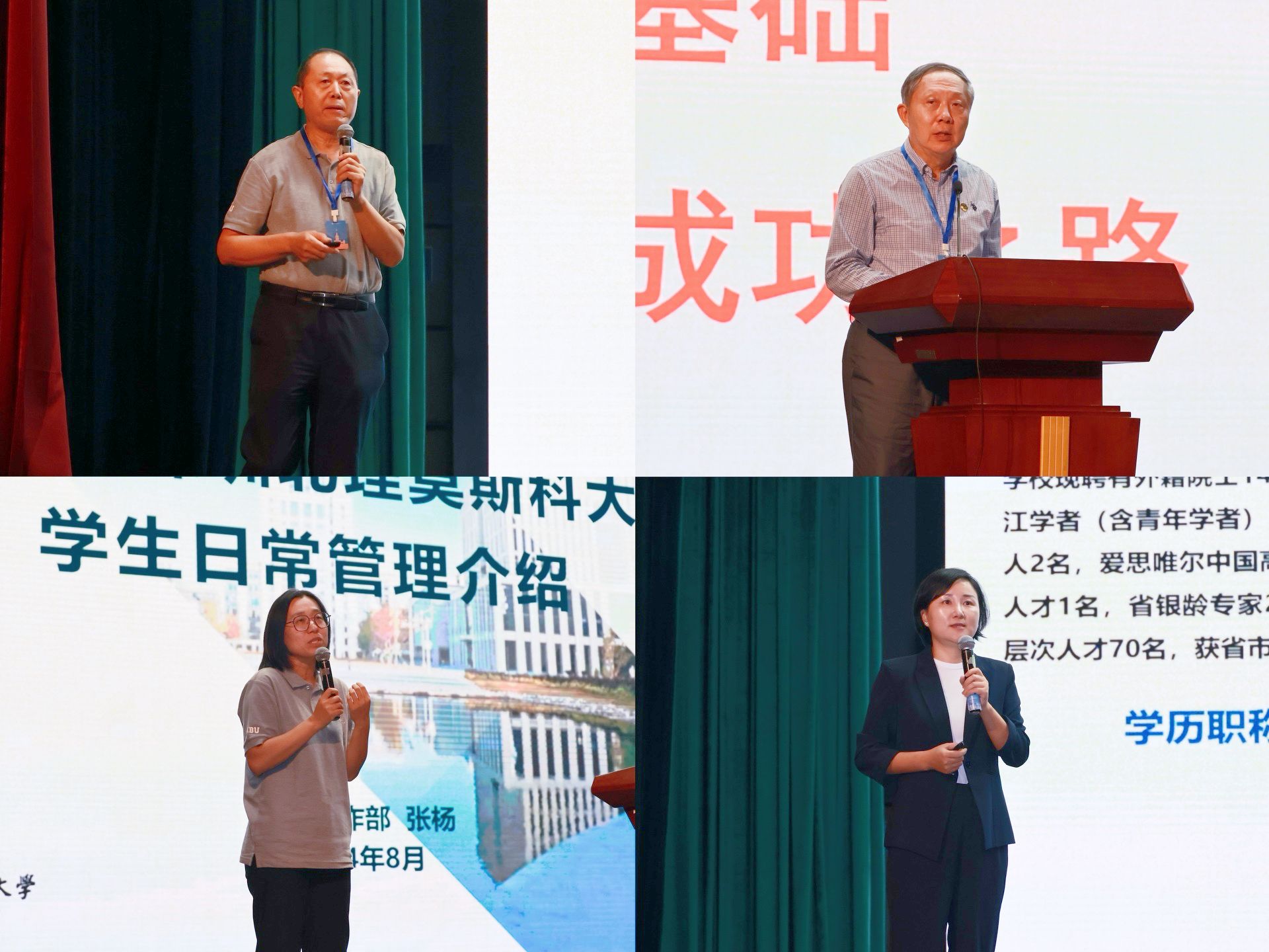 招生辦公室主任梅文博、學術事務部中方部長楊剛、學生工作部部長張楊、科研事務部副部長鄺永珍分別向新生和家長介紹了招生總體情況與特點、人才培養模式與特點、學生日常管理與獎助學金制度及學生國際交流、科研平臺與產學研結合等情況。