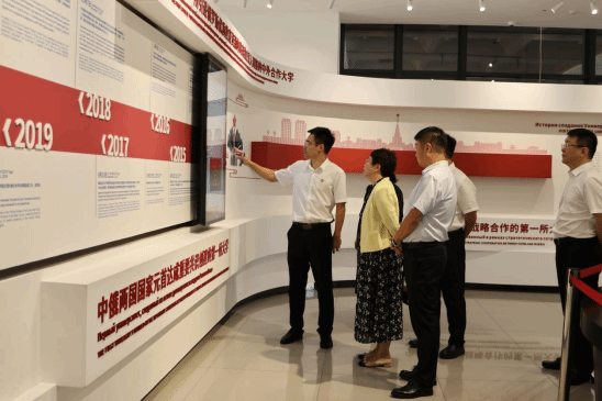 王敬波一行實地參觀了學校校園、校史館和《恰同學少年—留蘇檔案見證百年復興路》主題展覽,隨后雙方開展座談交流。