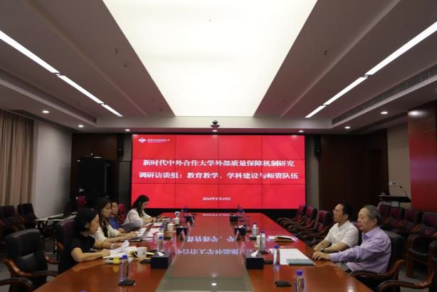 會前,課題組與學校辦公室、組織人力資源部、學術事務部、學生工作部、計劃財務部以及招生辦公室負責同志進行座談交流,了解學校教育教學、學科建設與師資隊伍、招生錄取、學生管理與培養成效、管理架構、財務運行等情況,并聽取了學校開展中外合作辦學的相關建議。