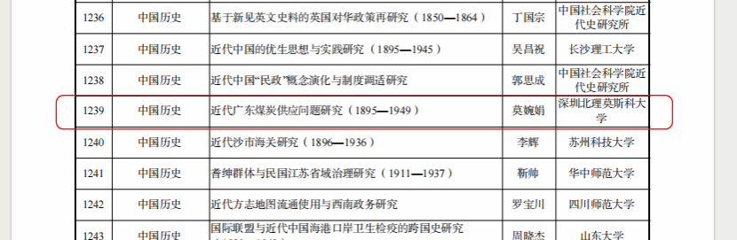 近日,2025年國家社會科學基金年度項目立項名單正式公布。深圳北理莫斯科大學馬克思主義學院講師莫婉娟申報的課題《近代廣東煤炭供應問題研究(1895-1949)》成功獲得青年基金項目立項,實現了學校在國家社科基金項目立項“零的突破”。