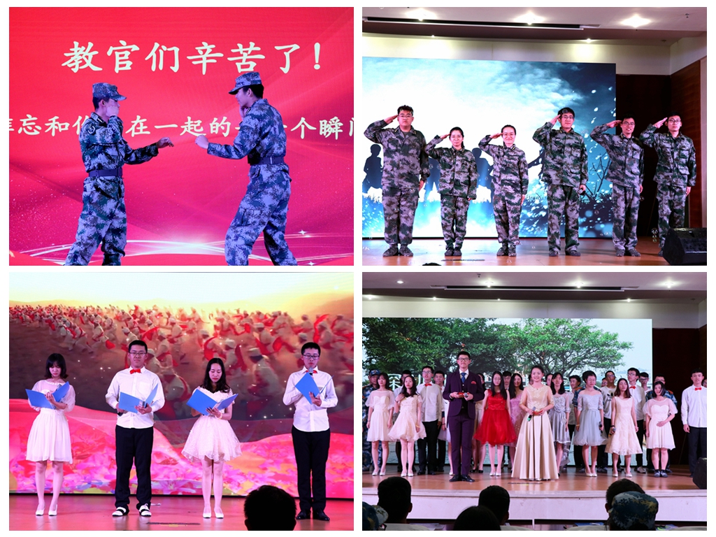 晚會分為三個篇章進行:青春啟航、軍營暢想、筑夢未來。一曲激情洋溢的《軍旅·青春·夢想》配合軍訓花絮剪影,拉開了晚會的序幕,現(xiàn)場氣氛歡快而熱烈。隨后,精彩絕倫、動感精湛的舞蹈節(jié)目《致青春》,體現(xiàn)出我校學子的青春活力;別出心裁的歌曲類節(jié)目《青春之歌》,深情悠揚,在場觀眾聽得如癡如醉;三句半《戲說軍訓》及幽默舞臺劇《軍訓那些事兒》詼諧地展現(xiàn)了陽光活潑的軍營生活,讓全體教官、指導員、學員在笑聲中回味了軍訓生活的點滴精彩。