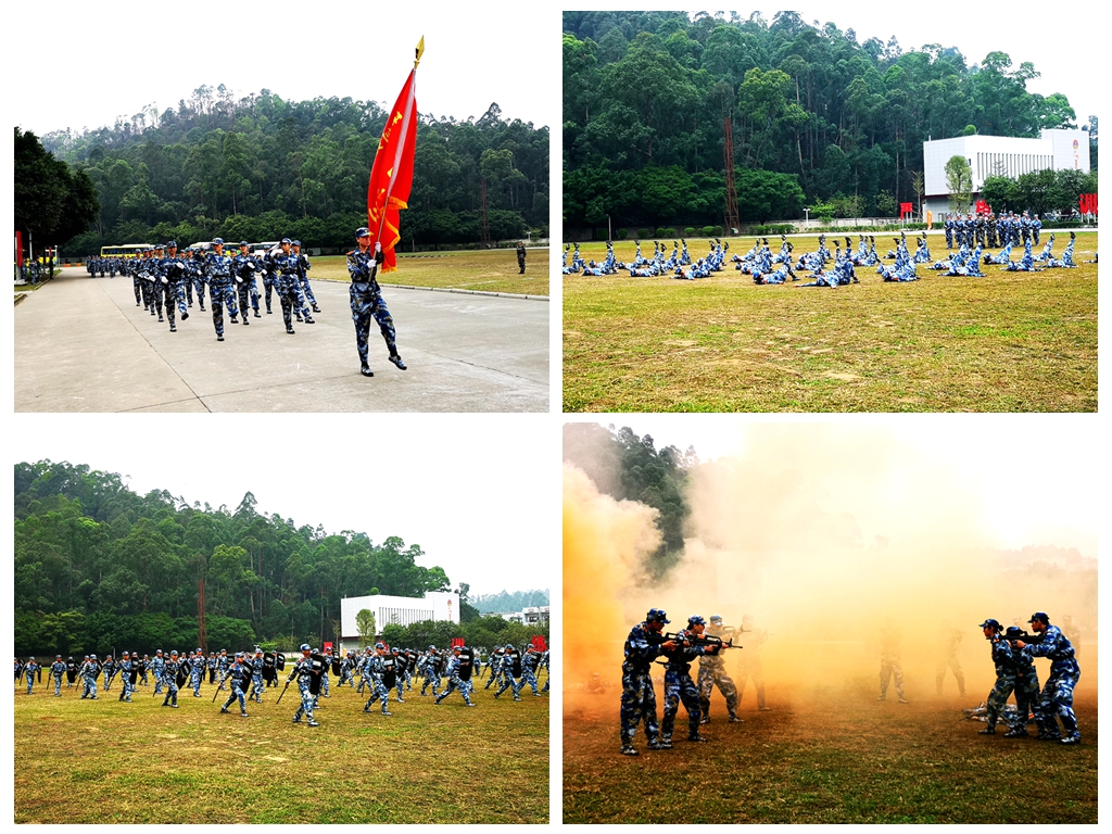 分列式和軍事科目表演過程連貫有序,現場氣氛莊嚴肅穆。分列式上軍訓連各方陣昂首挺胸,闊步通過主席臺,步伐鏗鏘有力,動作整齊劃一,口號恢弘嘹亮,充分展現了參訓學員昂揚向上的精神面貌。警棍盾術氣勢恢宏,剛勁有力;匕首操朝氣蓬勃,英姿颯爽;反恐戰術有條不紊、震撼人心,體現出同學們堅毅果敢的軍人風范,贏得全場陣陣掌聲