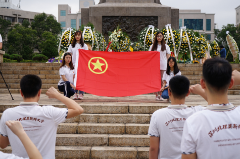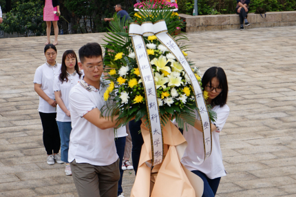 儀式在莊嚴的國歌聲中開始。全體成員向革命先烈紀念碑獻花、默哀,并在團旗下重溫入團誓詞。儀式沉靜而肅穆,綻放的鮮花充分表達了對先烈們崇高的敬意:革命先烈永垂不朽!