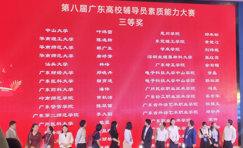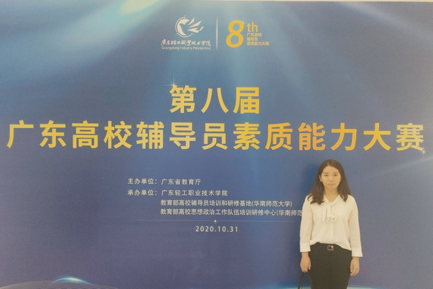 2020年10月31日,第八屆廣東高校輔導員素質能力大賽決賽在廣東輕工職業技術學院(南海校區)舉辦。經過激烈角逐,我校學生工作部輔導員張紅霞老師獲三等獎。