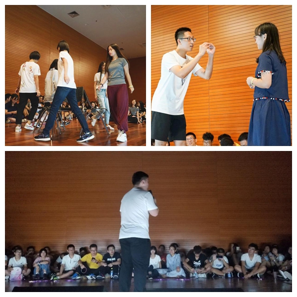 8月8日晚,各班進行第二次活動。首先,2017級的同學為新生介紹了學校日常學習、社團活動及在深圳市的“衣食住行”等概況。在此之后,同學們一同進行“解手鏈”游戲。活動結束后,各個班級與學長學姐合影留念。