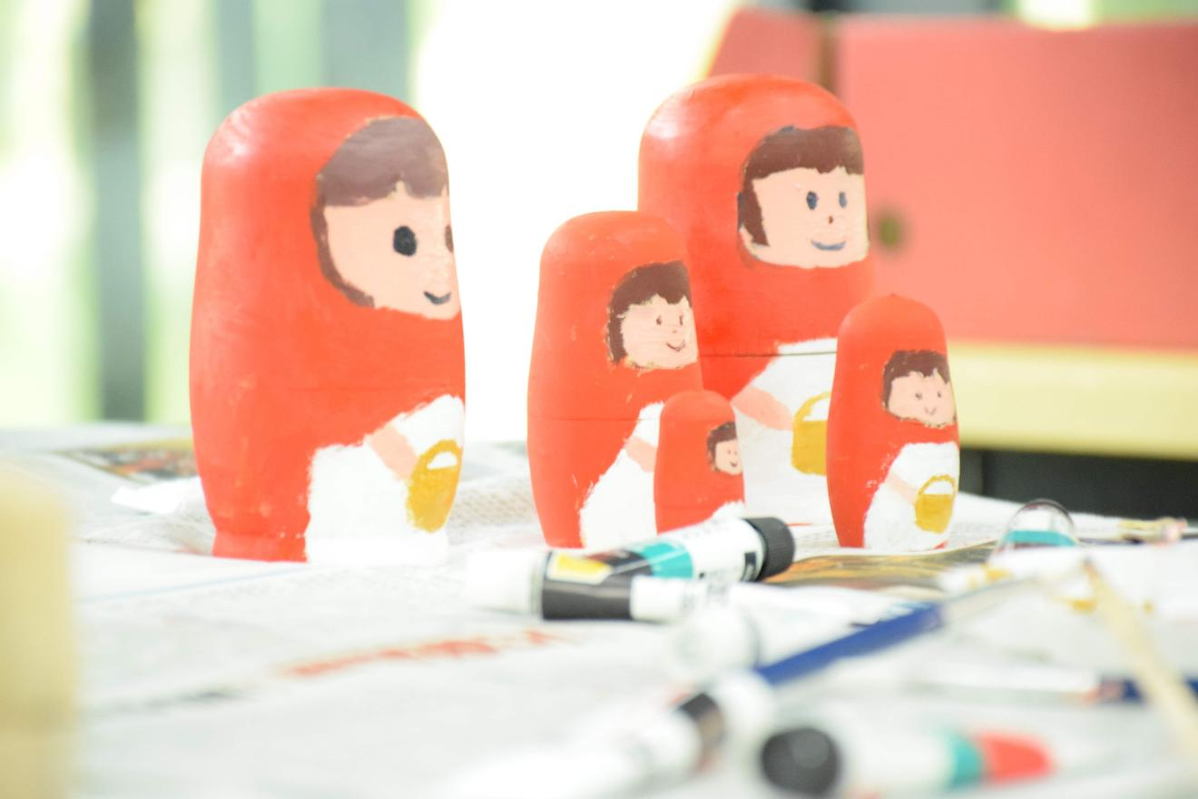 著色、畫花、上腮紅、描眉……在DYF美術手工社楊一冉同學指導下,參與同學紛紛動手繪制不同花色套娃,更有同學把鋼鐵俠、蜘蛛俠等電影元素融入在套娃繪制中,增添了科幻特色。俄羅斯套娃是一種俄羅斯特產木制玩具,由多個圖案相同的空心木娃娃一個套一個組成,廣為國人所知。