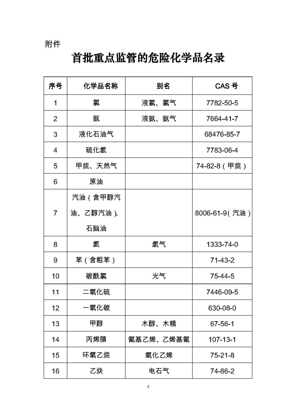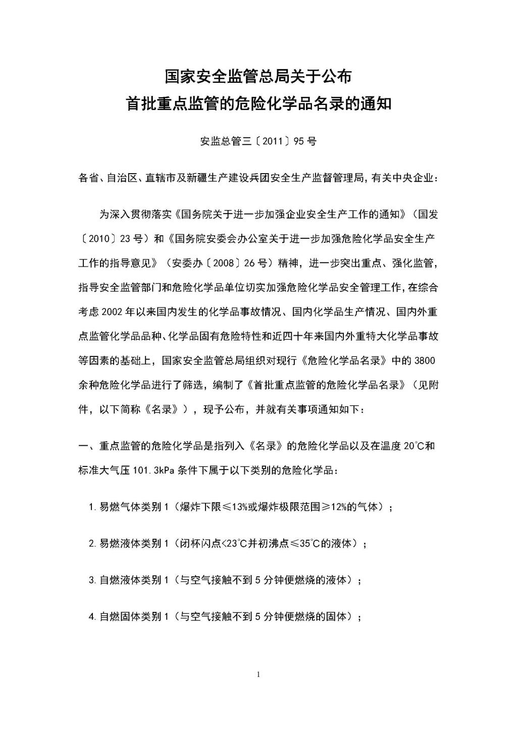 首批重點監管的危險化學品名錄(安監總管三[2011]95號)