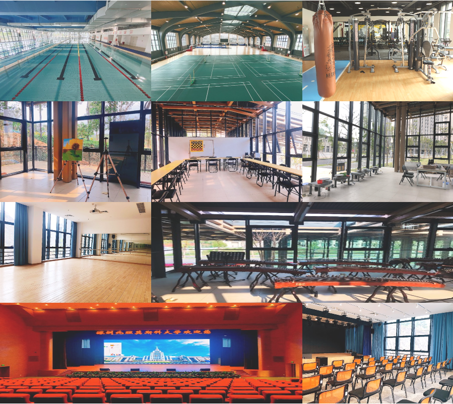 學校配套建設有體育場、室內多功能體育館、室內游泳館、健身房、舞蹈室、學生活動中心等,各類文體設施健全,設備先進,可滿足開展各類文體活動的需求。