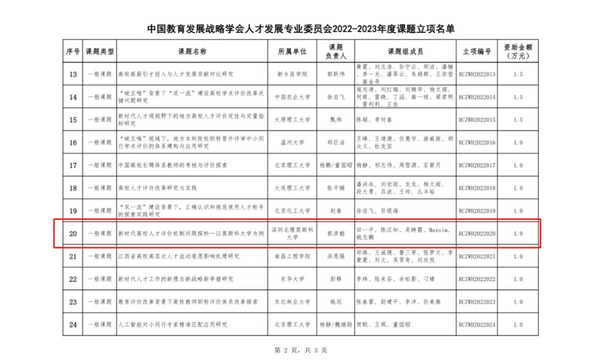深圳北理莫斯科大學組織人力資源部申報的《新時代高校人才評價機制問題探析—以莫斯科大學為例》課題獲得一般課題立項。據悉,莫斯科大學長期重視基礎學科建設,對基礎學科人才評價形成了獨具特色的模式和評價標準,特別是近八十年以來莫斯科大ИСТИНА(教師考評系統)對人才的成長和發展起到了極大的促進作用。深北莫因合作辦學便利,近幾年對莫斯科大學相關基礎學科人才評價領域進行跟蹤研究,取得了一系列務實經驗,下一步將在項目資支助下,開展基礎學科人才評價研究。