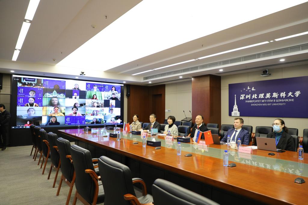 17日北京時間下午14時,研討會正式開幕。深圳北理莫斯科大學黨委書記、副校長朱迪儉,學術事務部部長彼得·卡爾梅科夫出席開幕式并致辭。黨委副書記、紀委書記陳超峰,漢語中心主任王瑋和國際學術交流合作部副部長卡佳·納杰日金娜共同參加了開幕式。