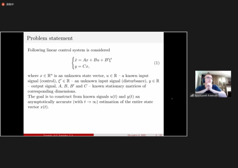 本次學術會議為期4天,主要圍繞概率論與數理統計,大數據、控制和最優化的分析等領域的問題展開討論。深圳北理莫斯科大學計算數學與控制系主任、俄羅斯科學院通訊院士伊利英教授,北京理工大學數學與統計學院院長田玉斌教授及聯合研究中心中方主任季霞教授出席致辭,中心執行主任張曄教授和布達克副教授為會議共同主持人。